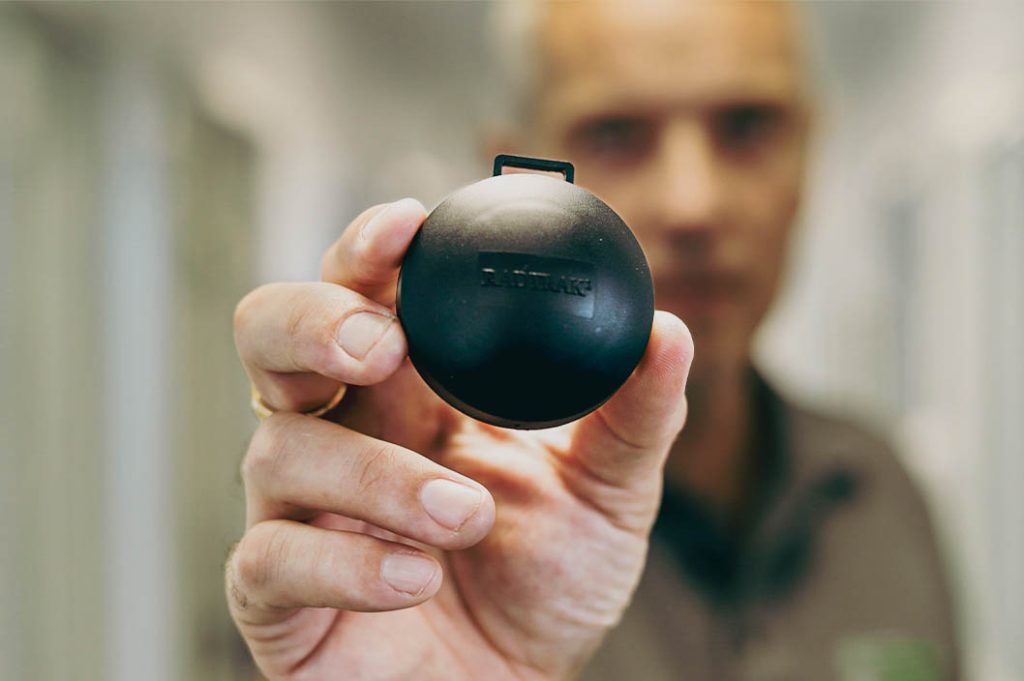 Radonpuck – hängs upp för att mäta radonhalter.