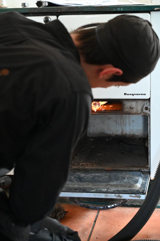 Vid sotningen tas brandfarliga beläggningar bort för att minska risken för brand.